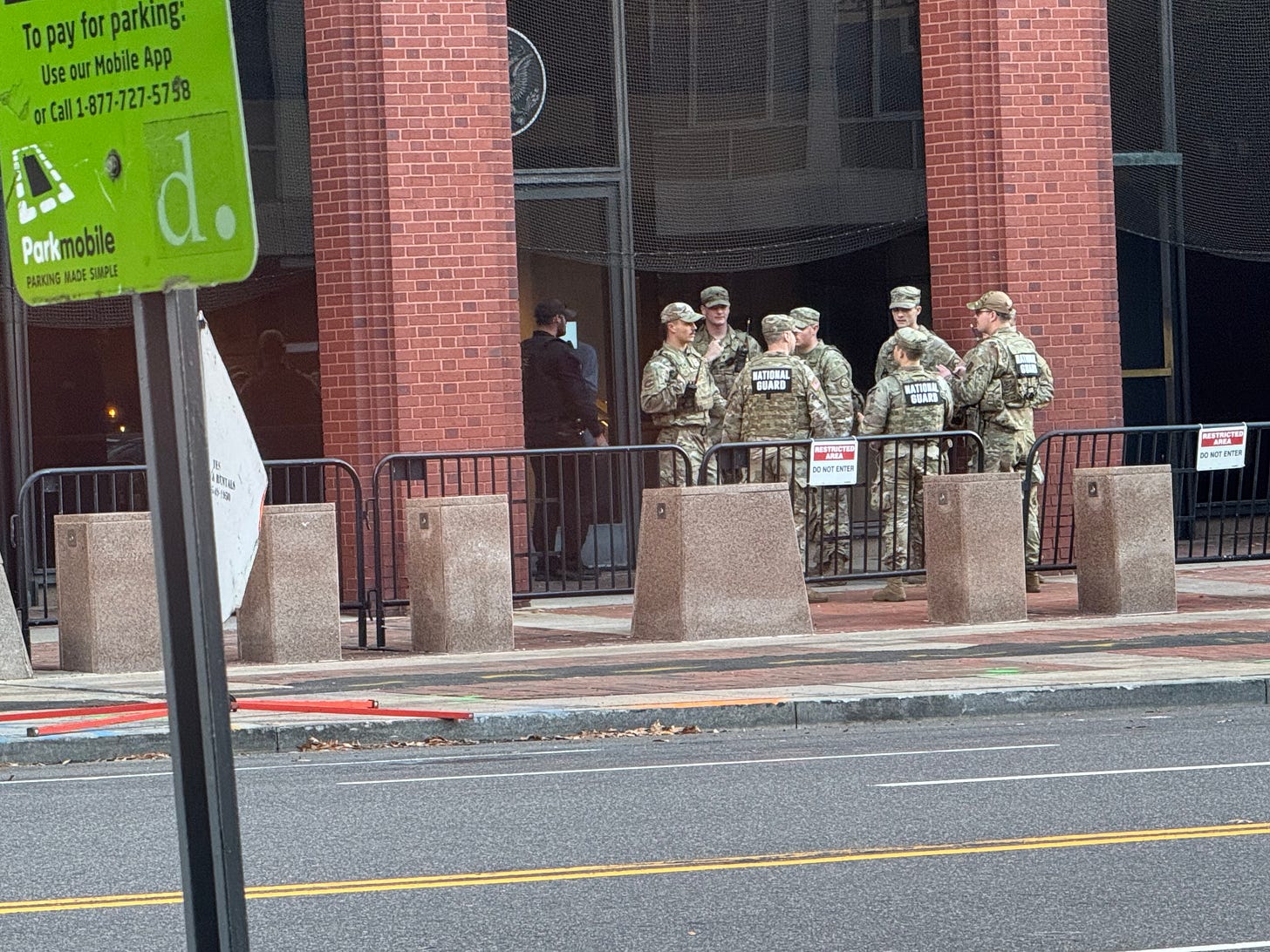 It wasn’t until later, walking home and listening to the news, that I learned it was members of the National Guard.